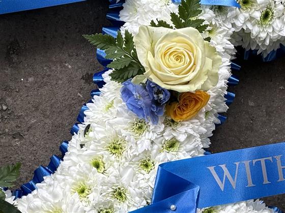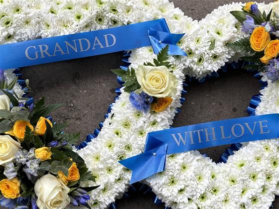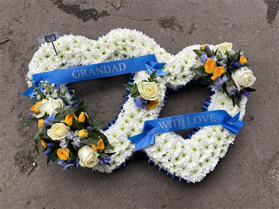 A massed double heart tribute - this tribute can be made in any colours you’d like. And you can add a ribbon sash to make your tribute more personal to yourself.