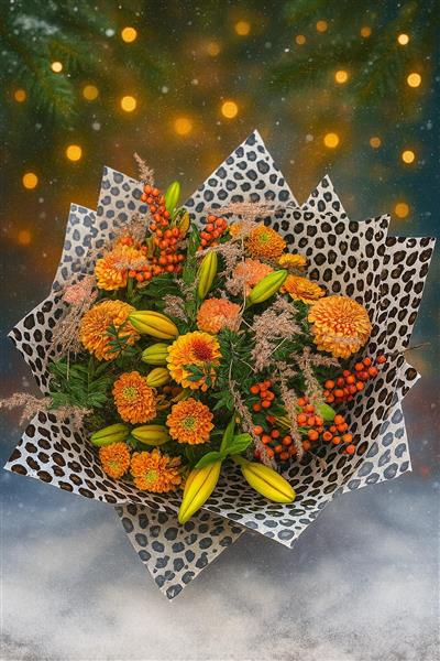 Perfect for someone who loves festive flair with attitude, this bouquet brings together warm seasonal tones and untamed textures to create a statement piece that’s anything but traditional.
