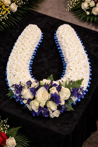 This magnificent bespoke horseshoe funeral tribute is a beautiful and deeply personal way to honour a loved one with a passion for horses, racing, or the countryside. Crafted with exceptional skill and care, it makes a truly striking and memorable tribute.