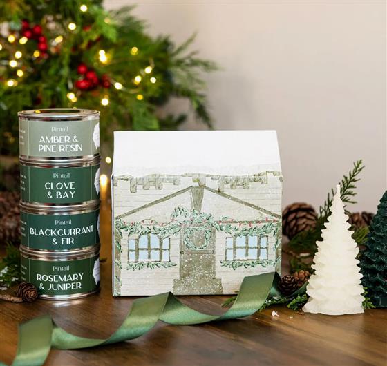 A Christmas gift with a little magic inside. Our Santa’s Workshop gift set comes in a keepsake engineered cardboard house, decorated with a hand-illustrated festive scene straight from the North Pole. Lift the snowy roof to reveal four of our classic paint pot candles, each with a 15-hour burn time, in scents made for the season.