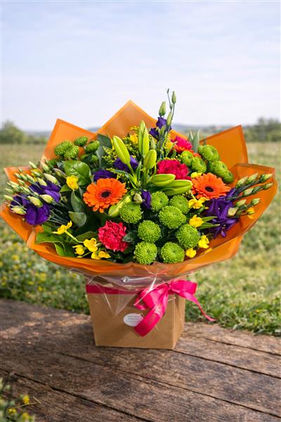 Arrives beautifully gift-wrapped in vibrant orange paper that amplifies the bouquetโs energy, finished with a stunning hot pink satin ribbon. Presented in a kraft water pack box to ensure flowers arrive fresh and perfectly hydrated.