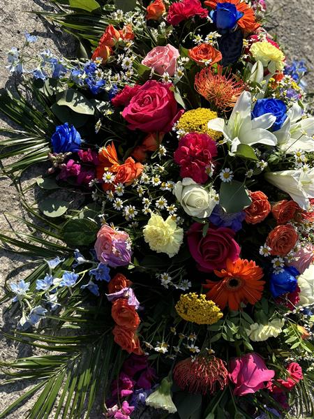 Vibrant mixed casket tribute